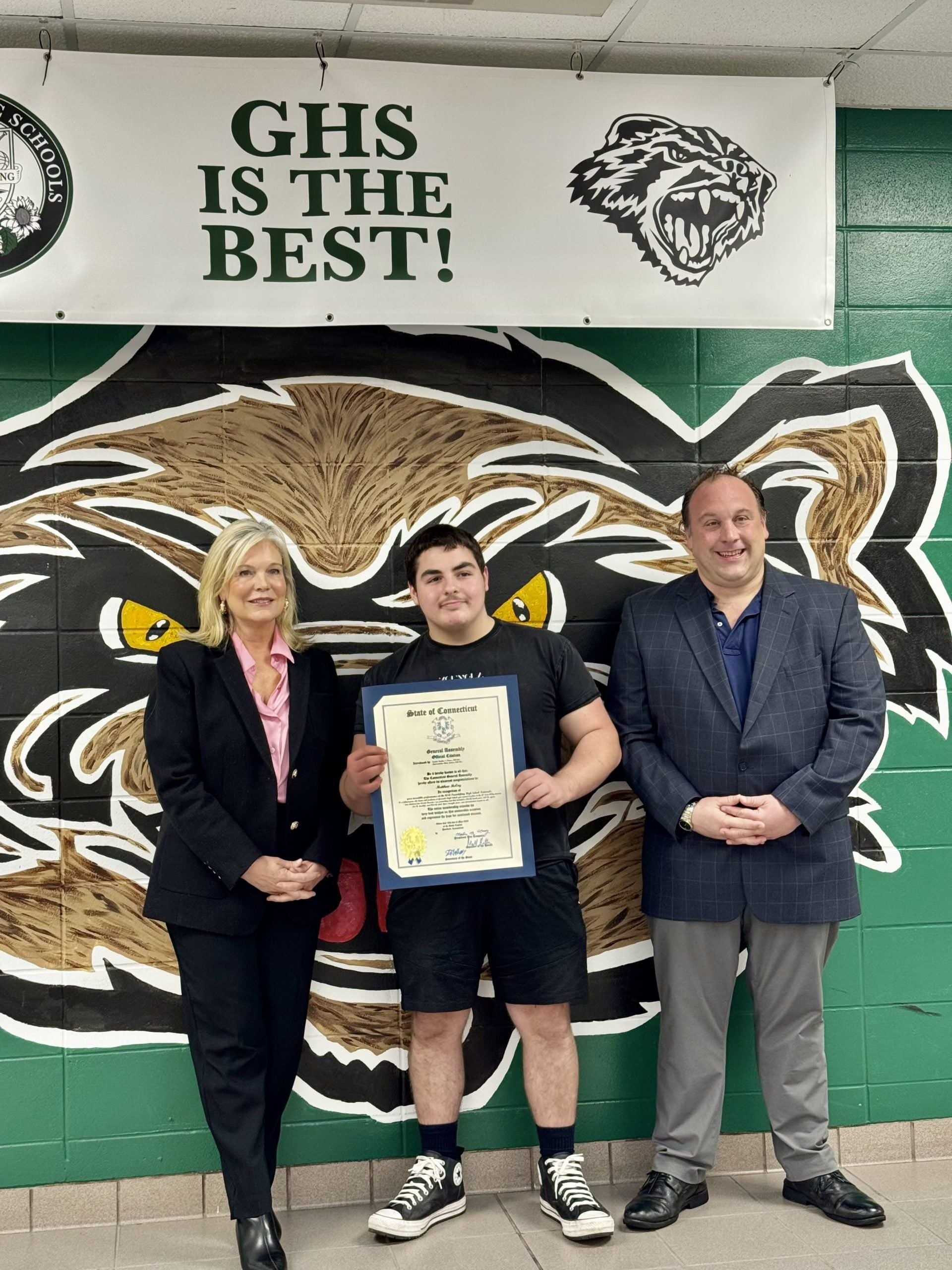 Last week at Griswold High School, Senator Heather Somers and I had the pleasure of presenting a legislative citation to Matt McCoy, the newest champion from the 45th district.
