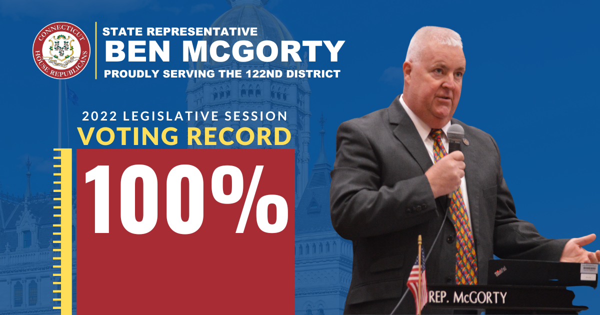 HARTFORD – According to a report from the House Clerk’s Office released last week, State Representative Ben McGorty (R-Shelton) earned a perfect 100% voting record for the 2022 legislative session, which concluded on May 4th.