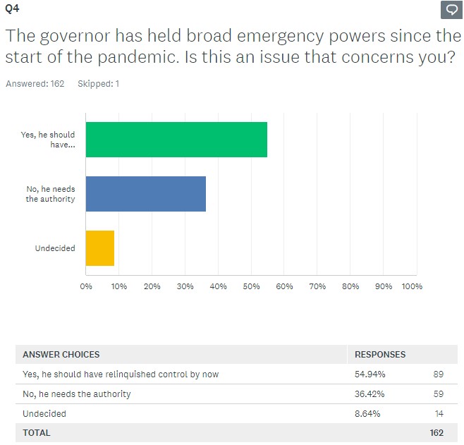 Q4 The Governor has held broad emergency powers since the start of the pandemic. Is this an issue that concerns you?