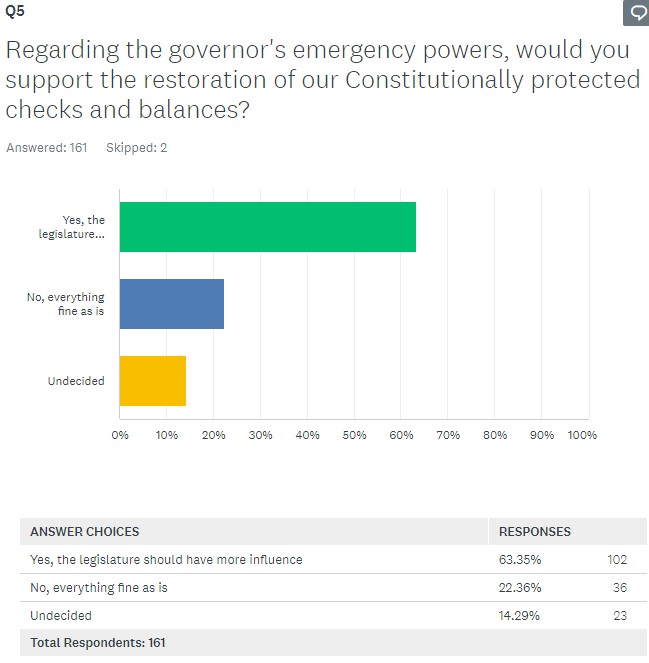 Q5 Regarding the Governor’s emergency powers, would you support eh restoration of our constitutionally protected checks and balances?