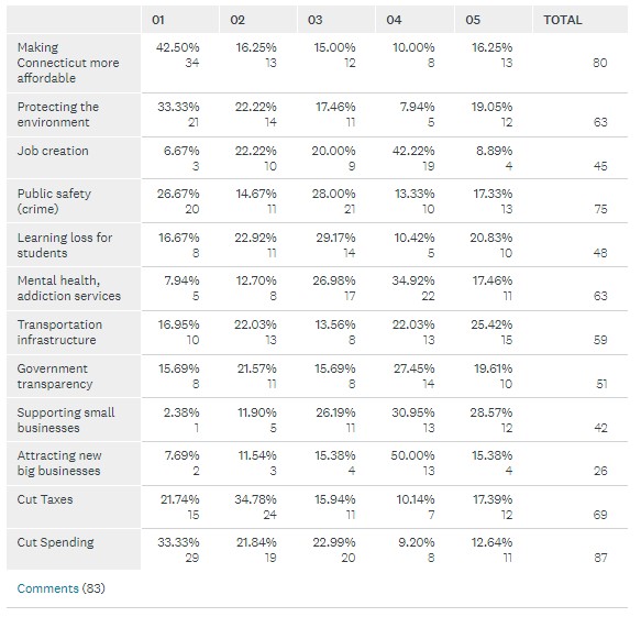Thank you for participating in my 2022 legislative session issues survey. As always feel free to reach out to me to share your thoughts, questions, and concerns about state government. You can view the results of the survey below: