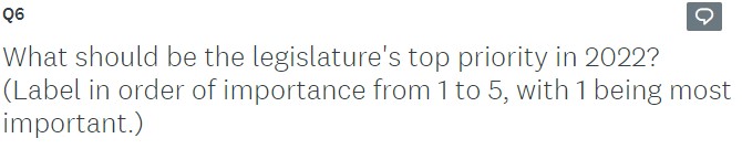 Q6 What Should be the legislature’s top priority in 2022?