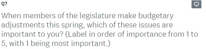 Q7 When members of the legislature make budgetary adjustments this spring, which of these issues are important to you?