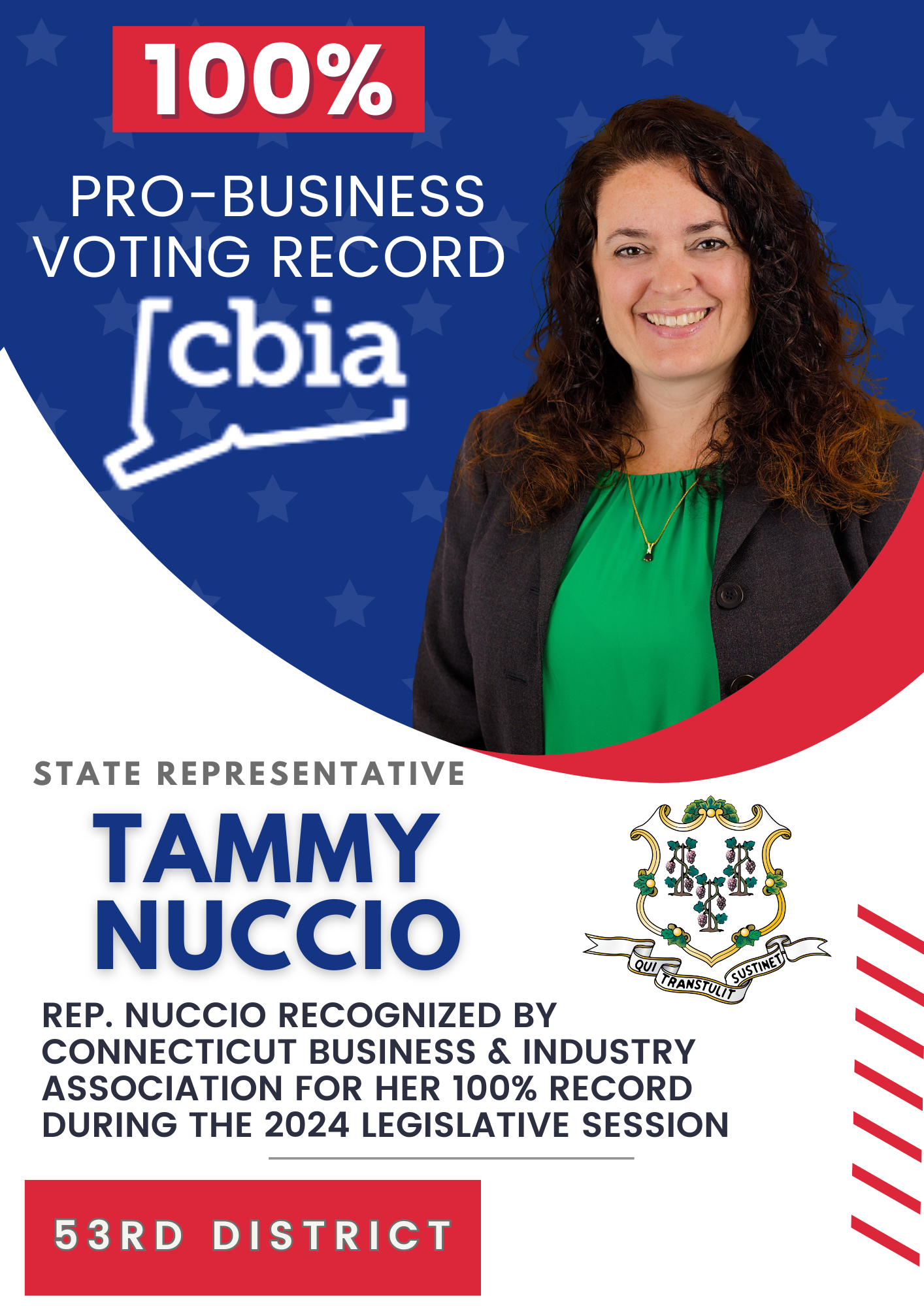 According to the association, Representative Tammy Nuccio (R-53rd) earned a 100% score based on her votes in connection to several key bills that arose during the legislative session. It is the second year in a row that Rep. Nuccio has earned a perfect score from the CBIA.