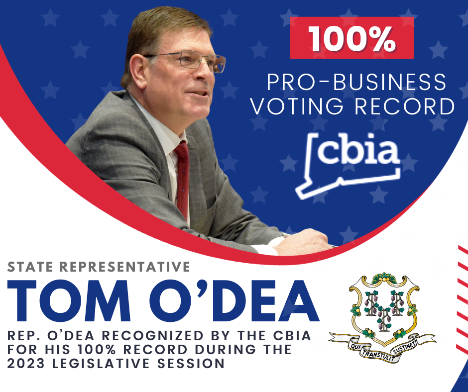 Connecticut’s largest business organization recognized State Representative Tom O’Dea with a perfect voting score on key bills impacting Connecticut’s economic growth and business climate during the 2023 legislative session.