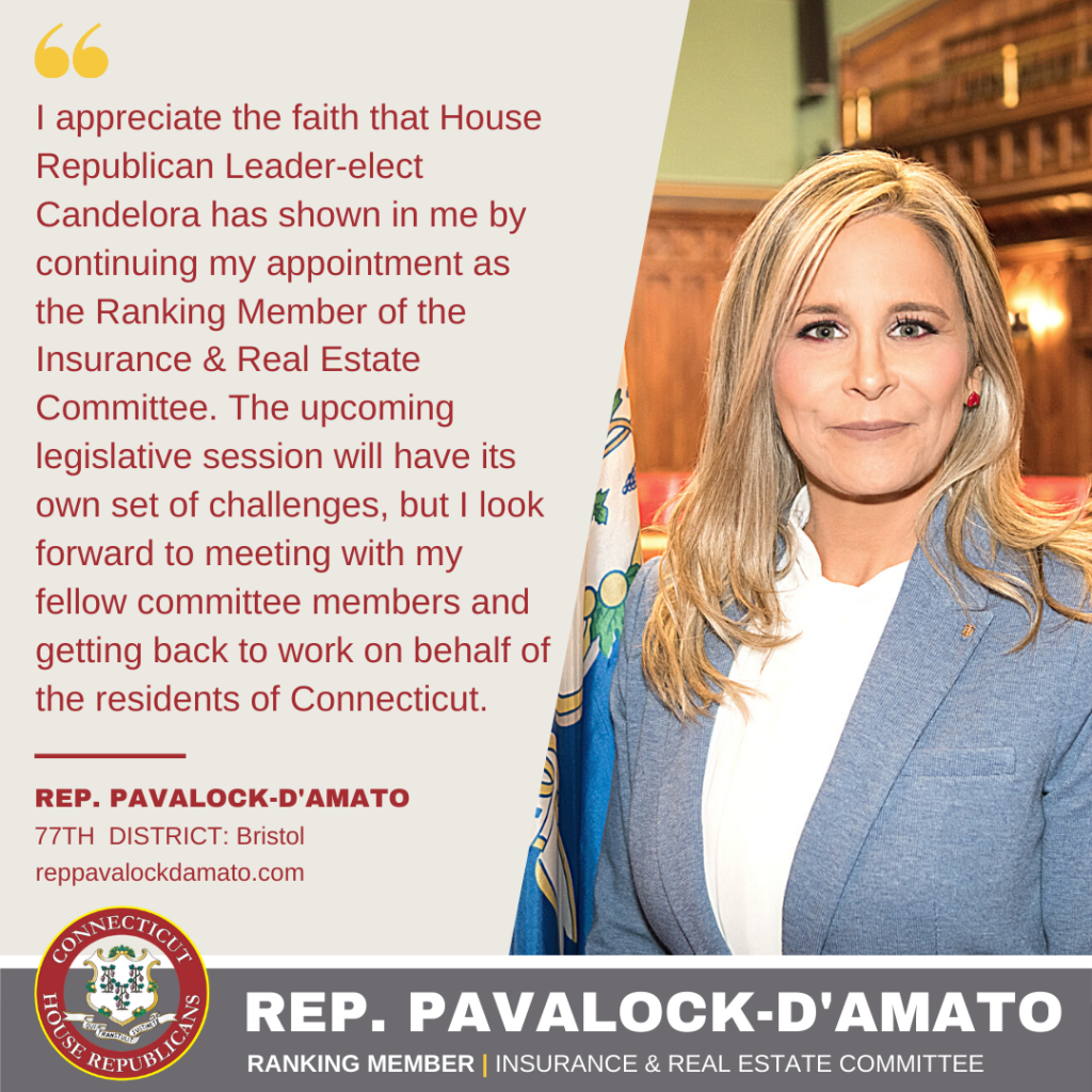 I am proud to announce that I have recently been notified by House Republican Leader-elect Vincent Candelora that I have been named an Assistant House Republican Leader. In addition, I have been appointed as the Ranking Member of the Insurance Committee for a second term, which will be my fifth year on the committee. For the second consecutive session I will also be a member of the Appropriations Committee and have been newly appointed to the Judiciary Committee.