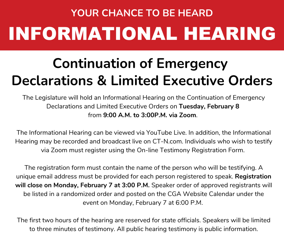 Informational Hearing on the Continuation of Emergency Declarations and Limited Executive Orders
