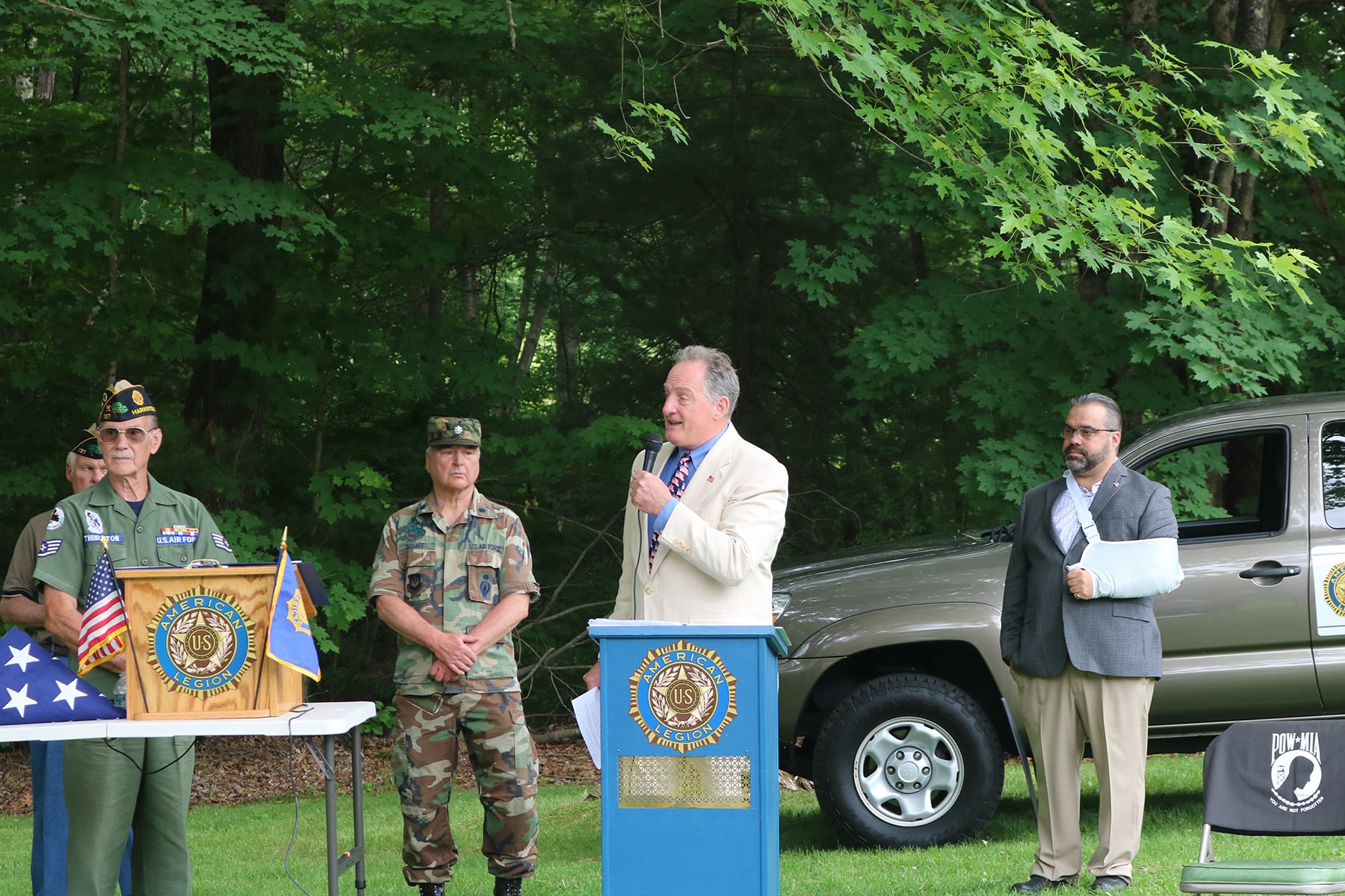 The collection concluded with a retirement ceremony in Harwinton on Saturday, June 11th. Harwinton American Legion Post 137 led the ceremony with assistance from the local Boy Scout Troop 55 and the Harwinton Volunteer Fire Department. Legion Commander Gary Schaff served a master of ceremonies with Dan Thurston as Sargent at Arms and John Stolicny as Chaplin. Boy Scouts Maxwell Cheney led the Pledge and Finn Williams presented the flags for retirement. Rep. Piscopo and First Selectman Michael Criss offered remarks to celebrate the occasion.