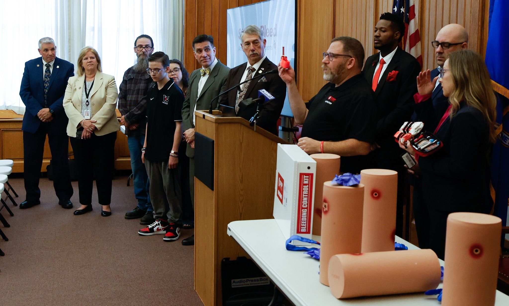 State Rep. Bill Pizzuto (R-71) joined several colleagues, capitol staff, lobbyists, and advocates for a free training to learn how to “Stop The Bleed.”