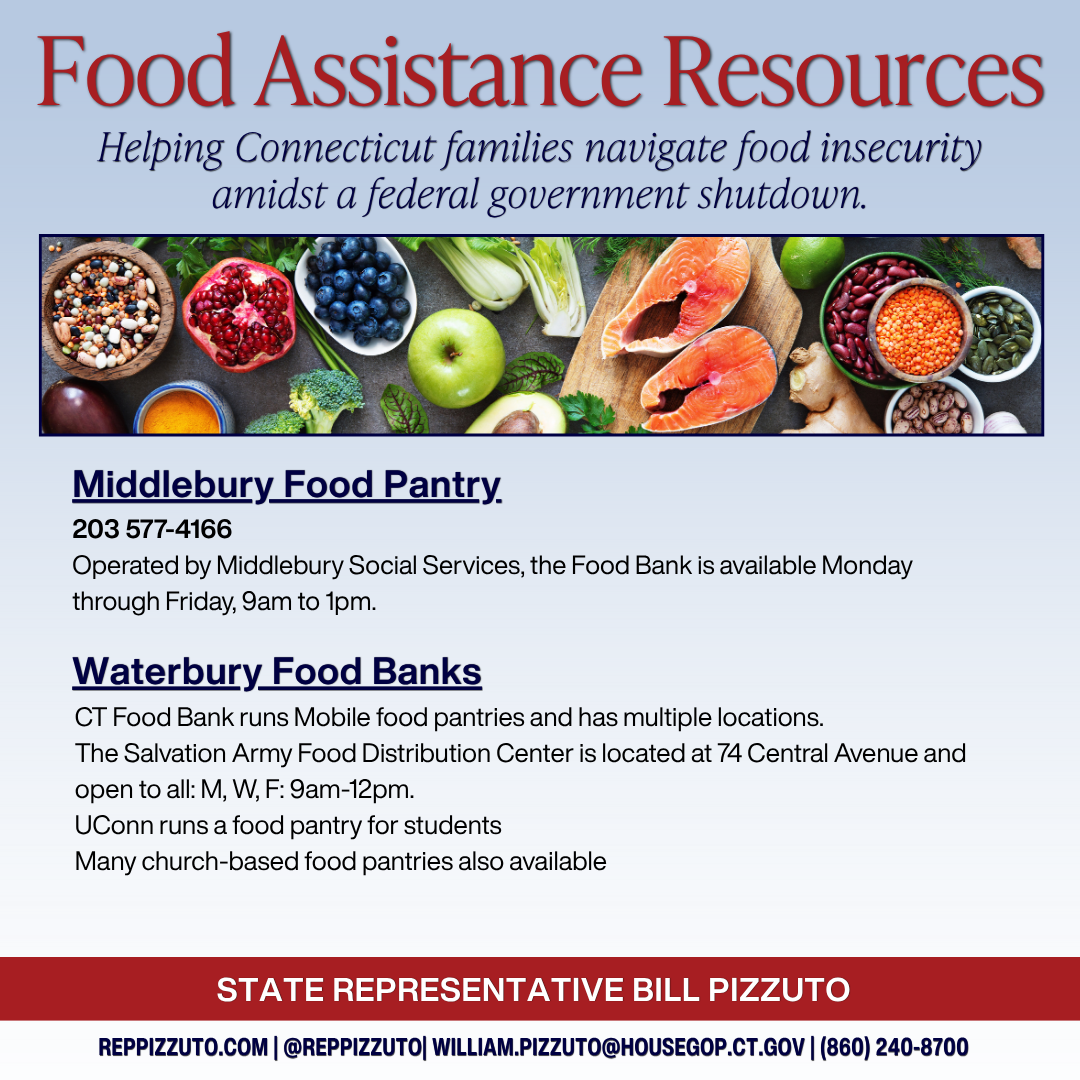 - Rep. Pizzuto shares updated food pantry locations and operating hours for local families
