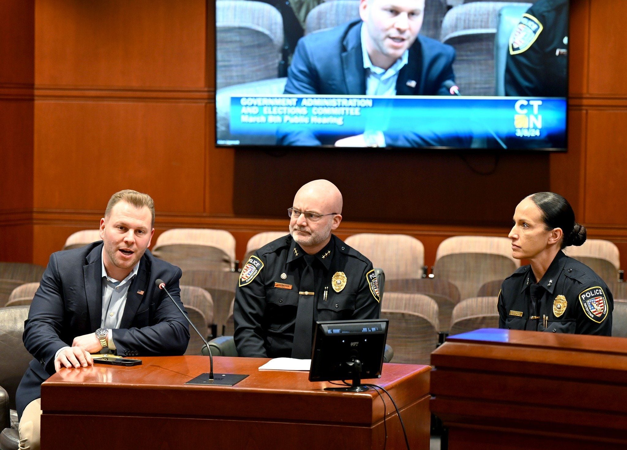 It was a great honor to be joined at the Capitol today by Watertown Chief of Police Joshua Bernegger and Deputy Chief Renee Dominguez, who testified on a bill that would increase protections for certain victims of sexual assault under the Freedom of Information Act (FOIA). Their advocacy on this important issue was on full display before the Government Administration and Elections Committee today and on behalf of the great people of Watertown, thank you both for your service!