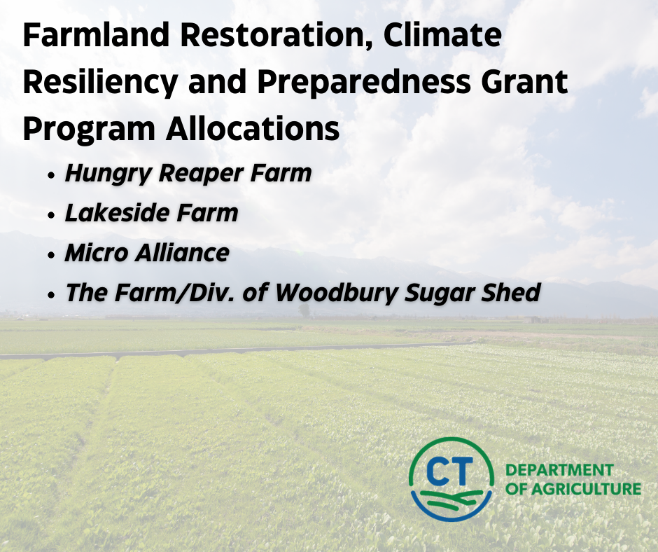 The Connecticut Department of Agriculture (CT DoAg) announced that it has allocated $1.475 million in state funding to farmers and non-profits involved in production agriculture to invest in long-term climate resiliency projects. According to the department, these actions will decrease vulnerability to extreme weather events through regenerative agricultural practices. Funding came from the Farmland Restoration, Climate Resiliency and Preparedness Grant Program.