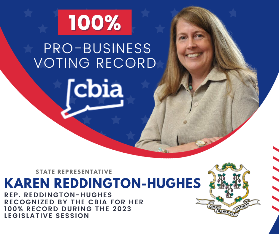 Connecticut’s largest business organization recognized State Representative Karen Reddington-Hughes (R-66) with a perfect voting score on key bills impacting Connecticut’s economic growth and business climate during the 2023 legislative session.