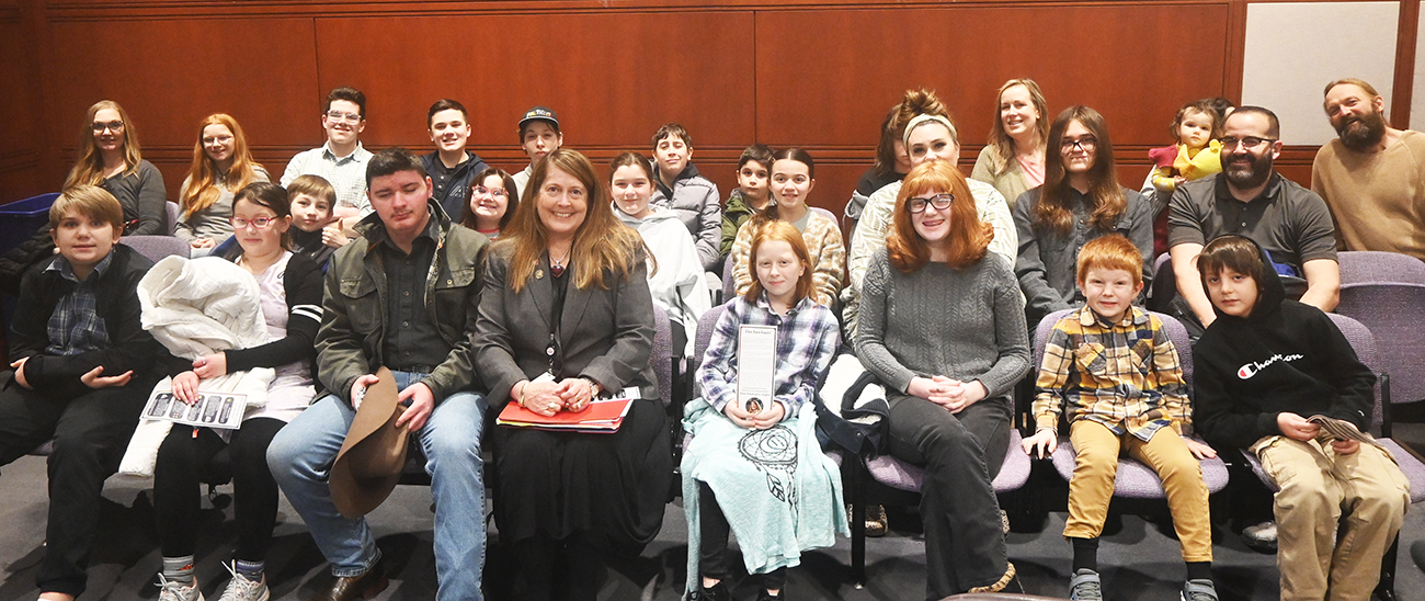 Photo: State Rep. Reddington-Hughes (center) is joined by students from Woodbury, Litchfield, Winsted, and other towns throughout the Northwest Corner.