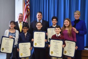 TRUMBULL – State Representatives David Rutigliano (R-123), Laura Devlin (R-134) and Ben McGorty (R-122) held a ceremony at the Trumbull Library to honor sixth grade winners of their 3rd Annual Essay Contest on March 10th.