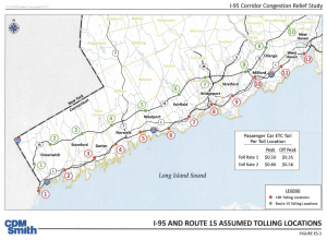 One of the proposed plans pushed by the Department of Transportation would have ten tolls on the Merritt Parkway from Greenwich to New Haven, twelve tolls on I-95 from Greenwich to New Haven, and potentially 72 tolls throughout the state. These tolls to not affect some of our federal funding would be have to be a controversial congested priced scheme which means the toll would increase during high traffic times.