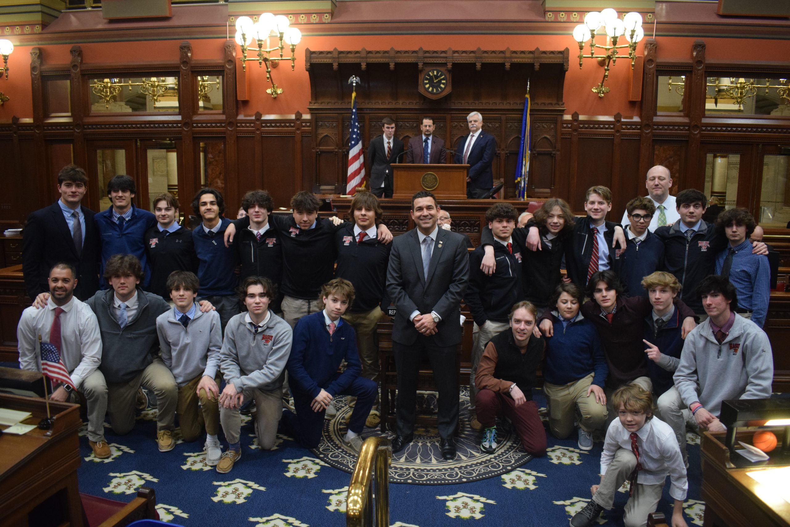 Monroe State Legislators Welcome Masuk High School Boys Hockey Champions to Capitol
