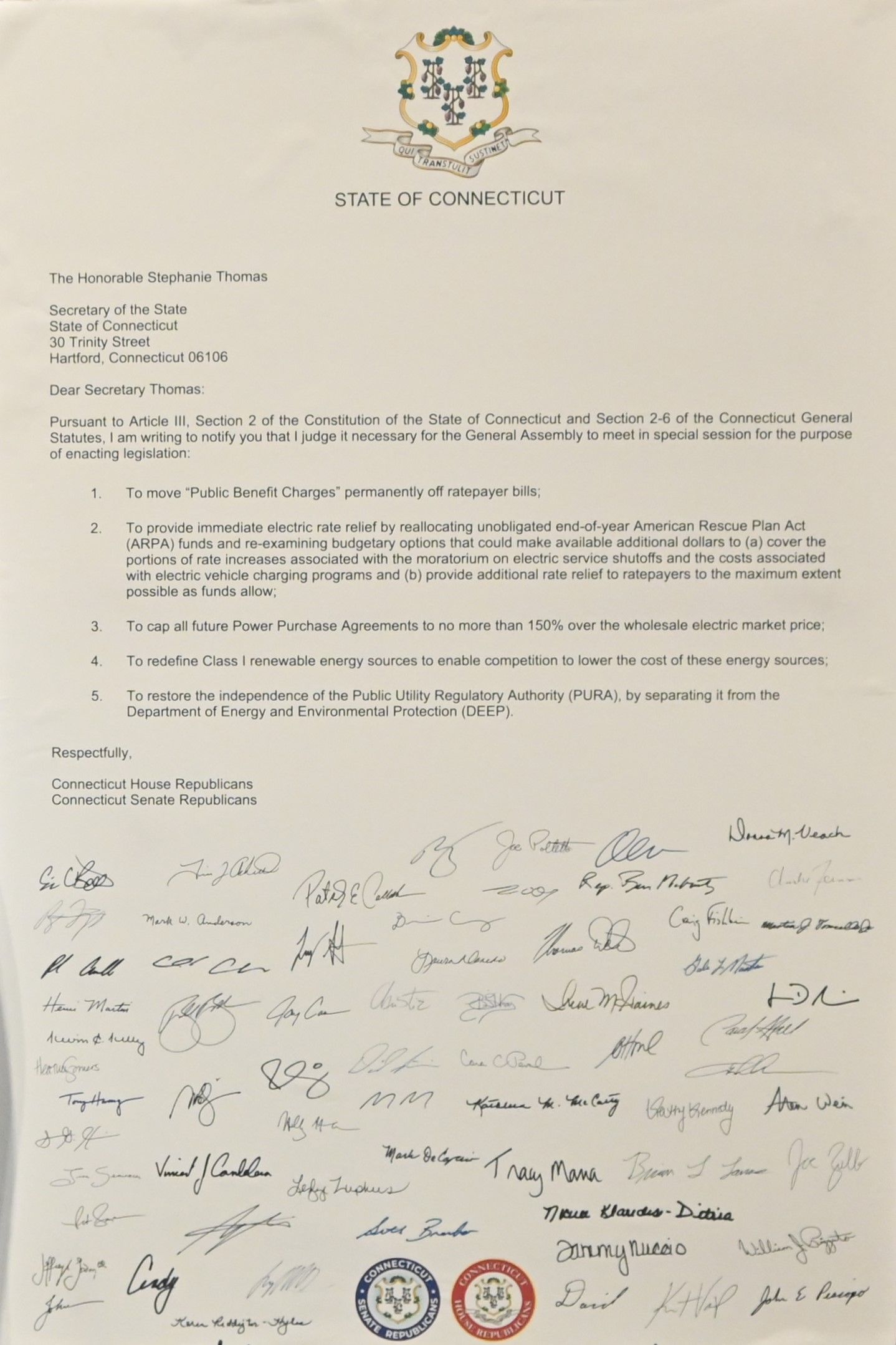 House and Senate Republicans are petitioning for a special legislative session to tackle perpetually high electric rates in Connecticut.