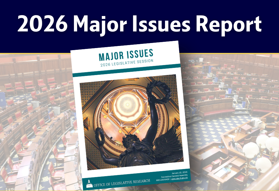 The 2026 Major Issues Report has been published! Compiled by the Office of Legislative Research in consultation with the Office of Fiscal Analysis and the Legislative Commissioners’ Office, this annual report previews the potential issues the legislature is expected to address in the upcoming lawmaking session.