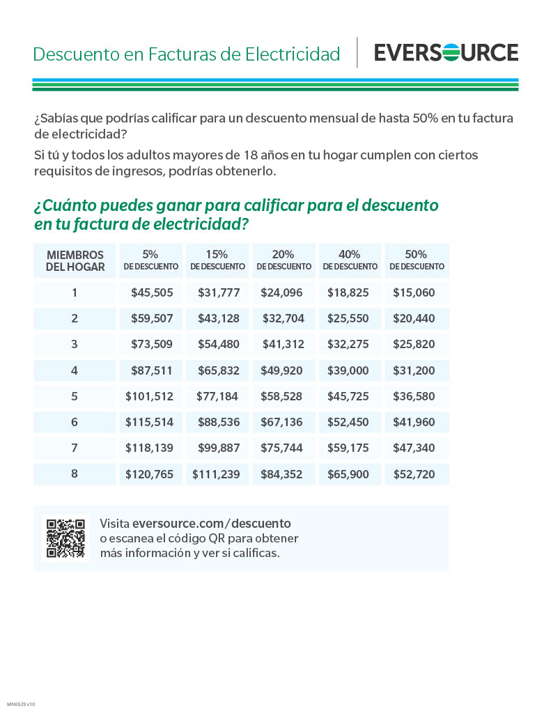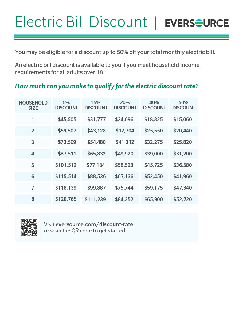 We received the following rate discount informaion from Eversource, and I wanted to pass it along to you. For more, please read this in its entirety and visit eversource.com or call Eversource at 800-286-2828.
