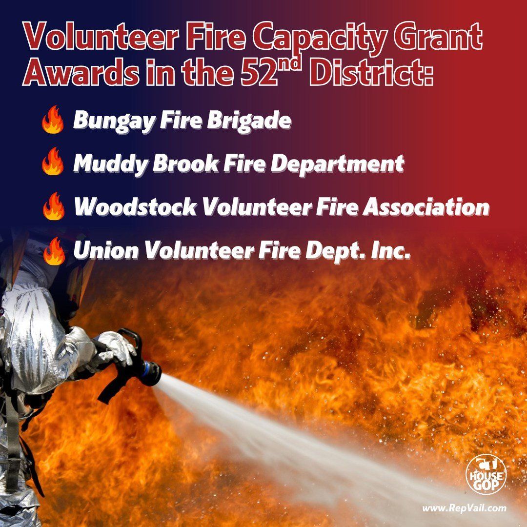 “These grants are an important investment in the safety and effectiveness of our local fire services,” said Vail. “We are incredibly proud of the dedicated volunteers who serve our communities, and we are grateful that this funding will directly support their mission to protect life and property.”
