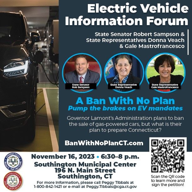 State Senator Rob Sampson, State Rep. Gale Mastrofrancesco and I will be hosting an Electric Vehicle Information Forum designed to provide further insight into a plan to prohibit the sale of all new gas-powered vehicles by 2035.