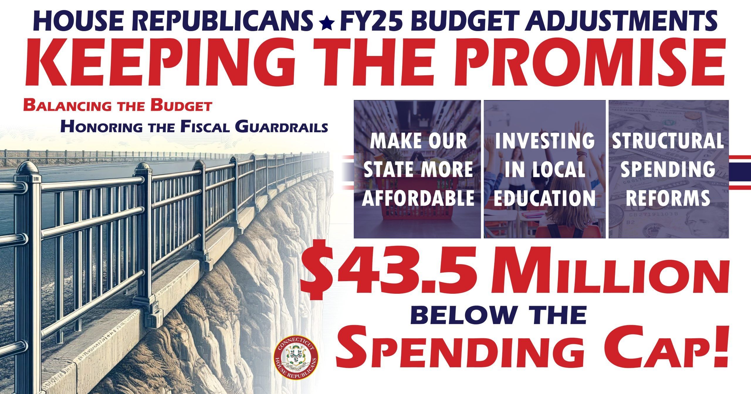 On Thursday, I joined my House Republican colleagues to release a plan to balance the second year of the state budget, keeping a promise to Connecticut residents by honoring the fiscal guardrails, focusing on affordability, pursuing structural spending reforms, and increasing funding for local education to help prevent more pressure on local property taxpayers.