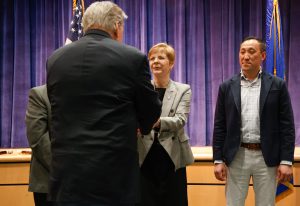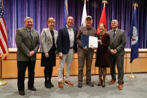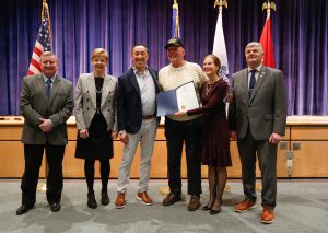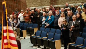 During a moving Tuesday night ceremony in the Suffield High School auditorium, Suffield’s Vietnam and Vietnam-era Veterans were honored and thanked for their service to the country by Lieutenant Governor Bysiewicz, Veteran’s Affairs Commissioner Welch, State Rep. Tami Zawistowski, State Senator John Kissel, and First Selectman Colin Moll.