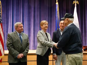 Following the veterans’ incredible conversations and remembrances, the officials presented each veteran with a lapel pin and certificate thanking them and noting their heroic service.