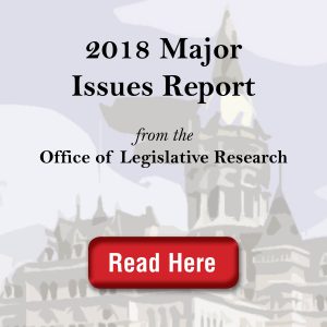 Every year, before the legislative session begins, the non-partisan Office of Legislative Research (OLR) publishes a report on the major issues that could be taken up by the legislature. OLR provides brief descriptions on a number of topics, including but not limited to: the state budget, opioid drug addiction, education funding, and Connecticut’s business climate.