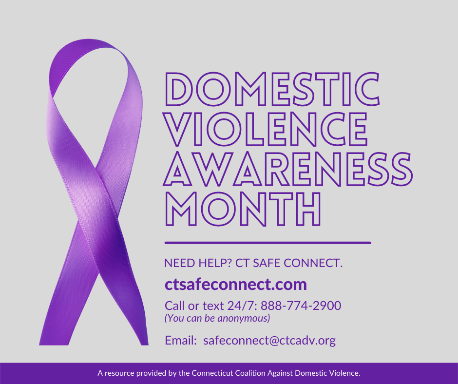 If you need an advocate or just someone to talk to, free, safe online or over-the-phone information is available 24 hours a day at www.CTSafeConnect.com or by calling/texting (888) 774-2900.