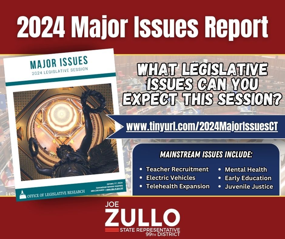 Recently, the Office of Legislative Research (OLR) released their 2024 Major Issues Report, highlighting what issues we may address during the upcoming Legislative Session.