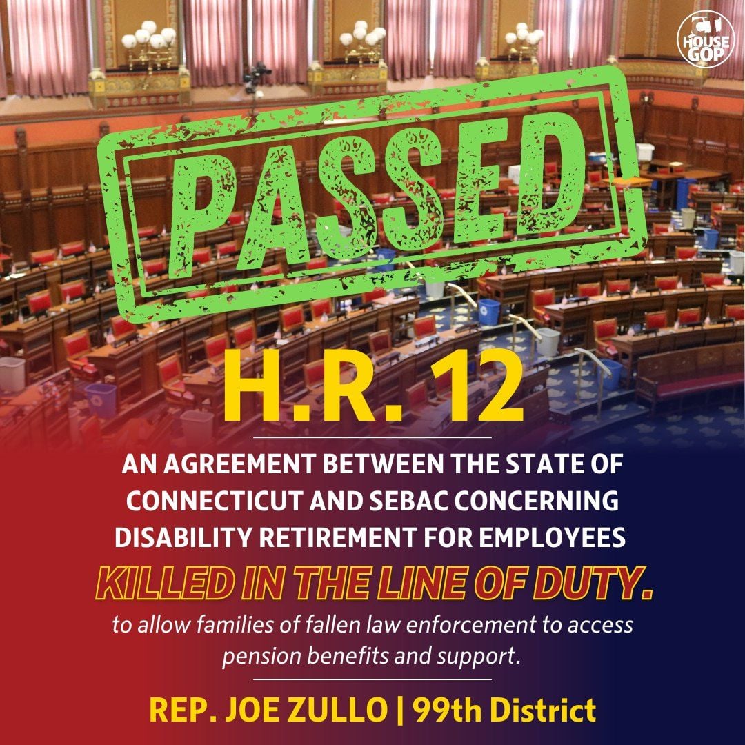 Yesterday, I joined my colleagues to pass House Resolution 12 which provides pension benefits to the families of fallen state troopers and other state employees who die in the line of duty. This would amend current state law which prevents certain surviving spouses of individuals killed in the line of duty to receive pension benefits, barring families of fallen officers to receive support following a tragedy.