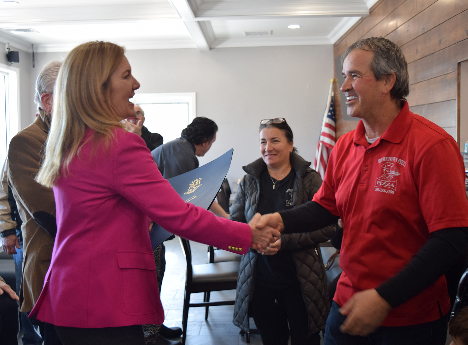On Tuesday, February 1, Deputy House Leader Lezlye Zupkus, R-89th, Mayor Robert Chatfield and Lt. Nelson Abarzua of the Prospect Police Department were honored to be there when Mr. Pacuku cut the ribbon on the renovation of his new restaurant on Prospect Road, which had been a former dairy bar. Rep. Zupkus also presented Mr. Pacuku with a citation from the Connecticut General Assembly for his hard work and determination.