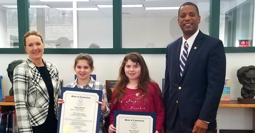 BETHANY – In honor of Women’s History Month, State Representative Lezlye Zupkus and State Senator George Logan hosted an essay contest for Bethany 6th graders with the theme, “How a Connecticut Woman Made a Contribution to the State and/or Nation and How it Has Influenced Me.”